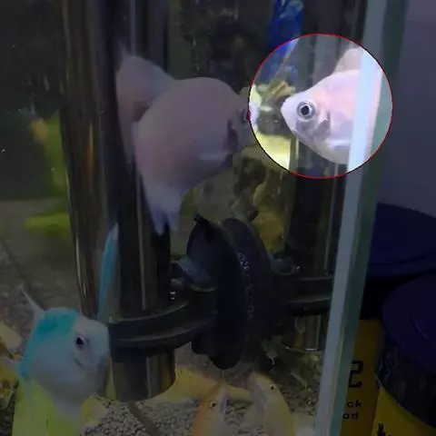 症状:全身布满比盐巴颗粒大一些的小白点,鱼只会不断的用身体摩擦底沙或水族箱中的装潢物品,妄图擦掉身上的白点虫。
