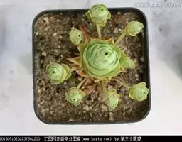 景天科风车草属的多肉植物,原产于墨西哥。株形和风车草属胧月极为相似。花瓣被蜡,叶排成延长的莲座状被…