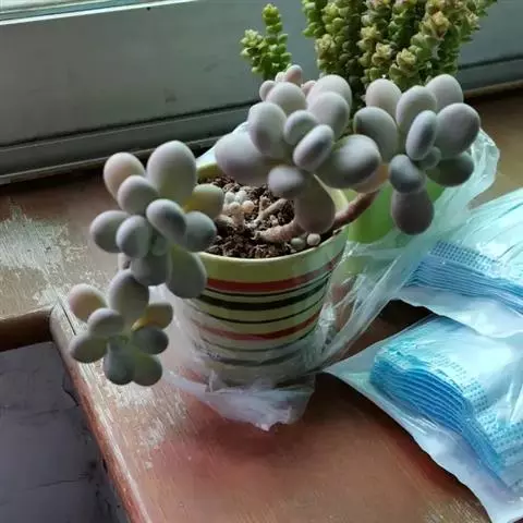 蓝豆是景天科、风车草属的多年生植物,多肉植物。植株叶片覆白粉,呈淡蓝色,…