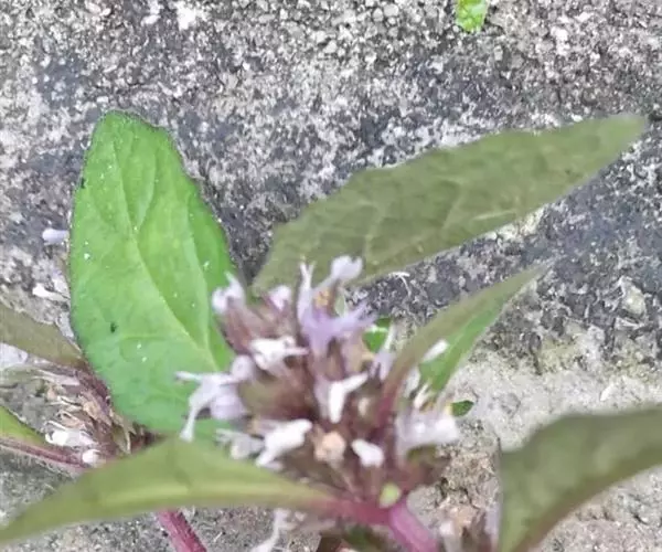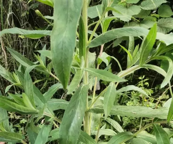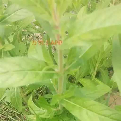 叶草质,对生,茎上部的互生,无柄,并多少抱茎;茎生叶披针状椭圆形至狭倒卵形或椭圆形,稀狭披针形,长4-12(-20)cm,宽0.3-3.5(-5)cm,先端锐尖至渐尖,基部近楔形,边缘每侧具20-50枚细锯齿,两面被长柔毛,有时在背面混生短腺毛,稀背面密被绵毛或近无毛,侧脉常不明显,每侧7-9条。总状花序直立;苞片叶状。