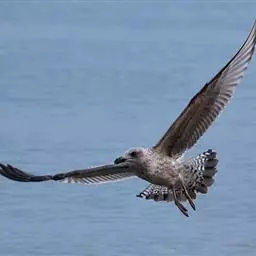 灰翅鸥,夏羽头、颈、腰、尾白色;肩、背和翅上覆羽鸽灰色。冬羽和夏羽相似,但头和颈具淡褐色纵纹,有时…
