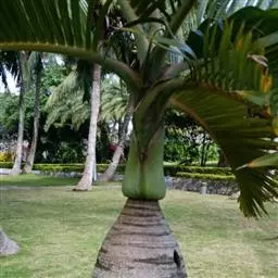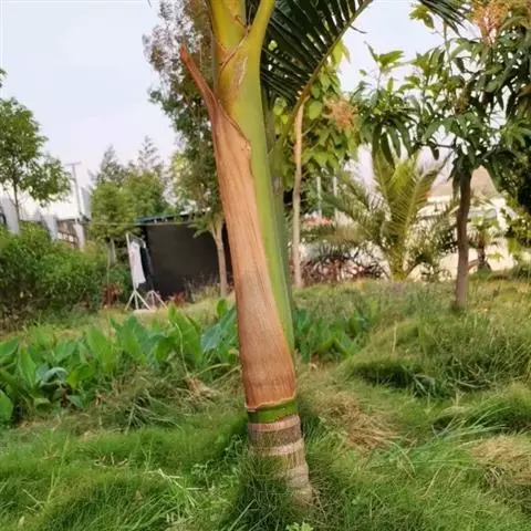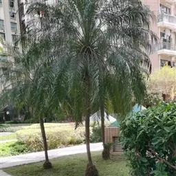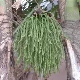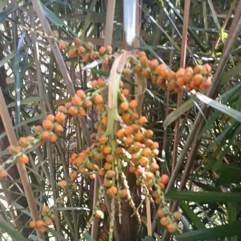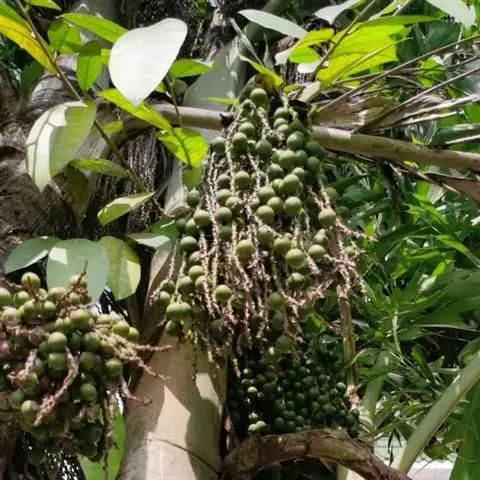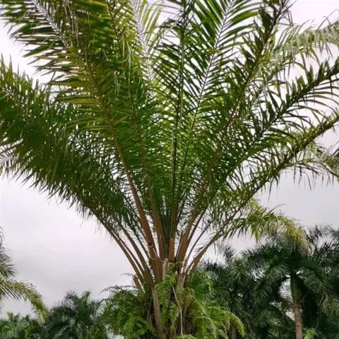 大型常绿单生乔木,极像食用椰子树,但果实细小,红色;叶片长而宽,叶片浓密、翠绿;株型硕大,茎有环状叶痕。 单干,高达5-9米,最高可达25米,树干基部直径约80厘米。羽状复叶,小叶线型,排列整齐,树形优美。