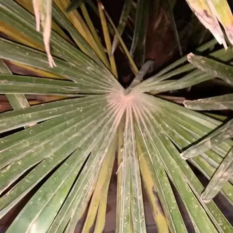 椰心叶甲:成虫、幼虫生活于未展开的心叶中,取食其心叶和嫩叶,造成许多孔洞,可将生长点吃光,影响植株正常生长,严重时可使全株枯死。此虫对不健康的树及4-5年的树危害严重,一年至少发生一代,但危害部位仅限于未展开的心叶内,一旦心叶展开,成虫随即飞离寻找合适的椰株。