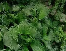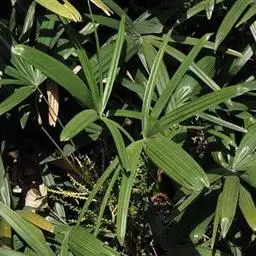 细叶棕竹,灌木,茎细如竹,多数聚生,有网状叶鞘。叶半圆形,掌状深裂,裂片狭长,阔线形,软垂,裂片7…