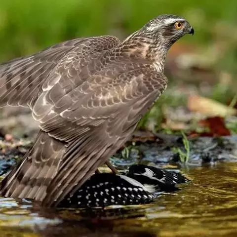 松雀鹰又名雀鹰、松子鹰,是鹰形目鹰科鹰属小型猛禽。雄鸟头顶至后颈黑灰色,眼先白色,…