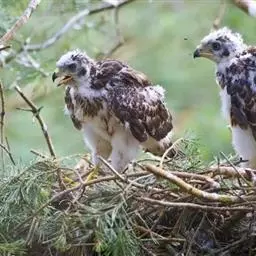 巢都是用粗大的树枝搭成,如果繁殖成功和无干扰,巢可多年使用,甚至有使用长达18年的巢,但每年都需要进行修理和补充巢材,因此巢的结构较为庞大。巢的形状为盘状,主要由树枝、灌木枝、枯草等堆集而成,内铺以树皮、枯草、羽毛和碎纸。雄鸟和雌鸟共同参与营巢,每窝产卵2-3枚,偶尔有多至4枚的。