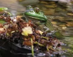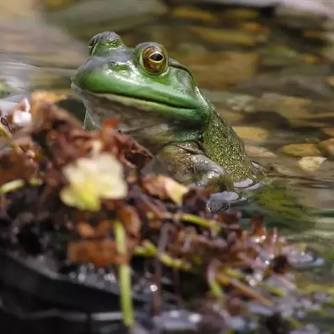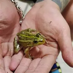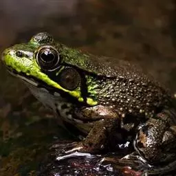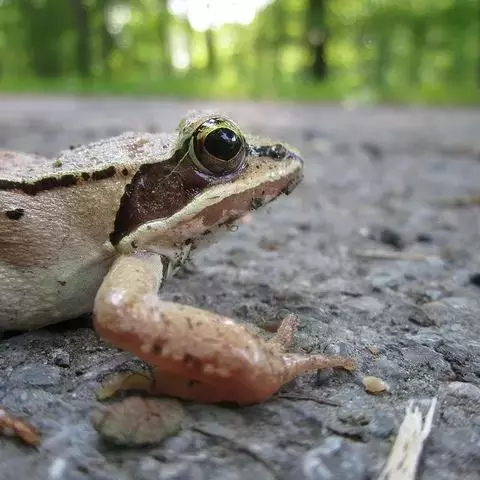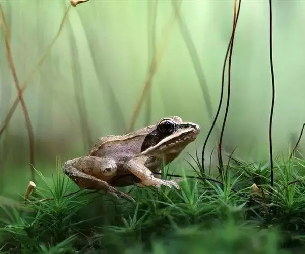 林蛙又称雪蛤,广泛分布于中国北部地区,西伯利亚、朝鲜也有分布。林蛙与蛤蟆和田鸡是完全不同的动物。林蛙头部扁平,四肢较细长,体长70~80毫米;鼓膜圆,鼓膜部有三角形黑褐色斑;体背多为土黄色,一般在疣上散有深色的斑点;背褶在鼓膜上方斜向外侧弯曲。林蛙以陆栖为主,常在没有强烈光照、湿润凉爽的环境中生活,主要栖息于山林、沼泽、水塘、水坑和水沟等静水水域及其附近,以林间草地为多。林蛙行动敏捷,跳跃力强,主要以多种昆虫为食,例如苍蝇、蚊子等 。