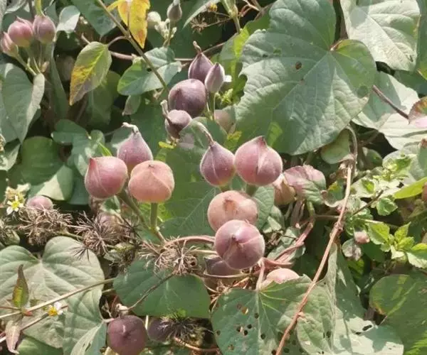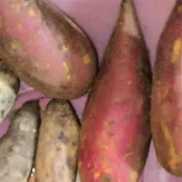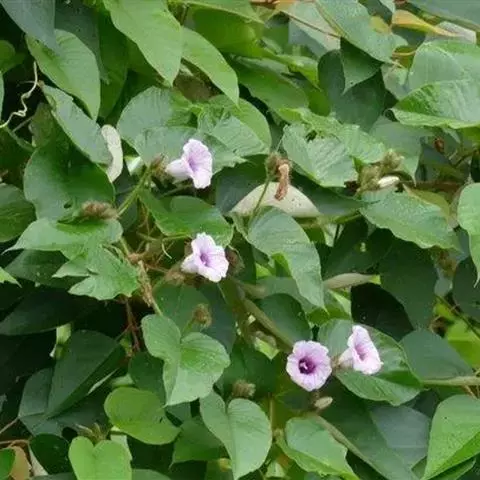 番薯 Lam.),多年生草质藤本植物,具有乳汁;其块根为白、红或黄色;茎生不定根;叶呈宽卵形或卵状心形,叶色有浓绿、黄绿、紫绿等,前端渐尖,基部呈心形或近平截;花冠为粉红、白、淡紫或紫色,呈钟状或漏斗状,无毛;蒴果呈卵形或扁圆形;由于番薯是于异花授粉,自花授粉常不结实,所以有时只见开花不见结果。 种子1-4粒,通常2粒,无毛。番薯原产于南美洲及大、小安的列斯群岛,现已广泛栽培在全世界的热带、亚热带地区,但在一些较北的地区如黑龙江省也已栽种成功,中国大多数地区都普遍栽培。番薯适应性强,喜温暖多光而不耐霜冻,抗旱耐碱,适种于肥沃而排水良好的砂质壤土,是一种易于保收的作物。番薯是一种高产而适应性强的粮食作物,在中国南方,有“一造番薯半年粮”的说法, 与工农业生产和人民生活关系密切;块根除作主粮外,也是食品加工、淀粉和酒精制造工业的重要原料;根、茎、叶可作