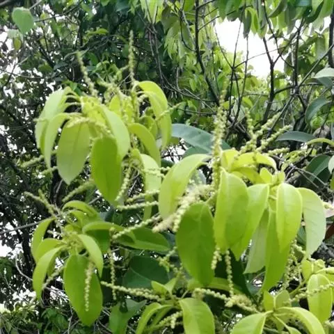 花序轴无毛,雄穗状花序通常单穗腋生,雄蕊12-10枚;雌花序长达15厘米。