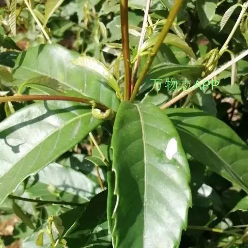 叶二列,叶片革质,长椭圆形,卵状椭圆形或兼有倒卵状椭圆形,长7-15厘米,宽3-6厘米,顶部渐尖或骤狭急尖,短尾状,基部近于圆或宽楔形,通常一侧略短且偏斜,叶缘在中部以上有锯齿状锐齿,很少兼有全缘叶,中脉在叶面至少下半段微凸起,上半段微凹陷,支脉明显或甚纤细,成长叶叶背淡银灰色;叶柄长1.5-2.5厘米。