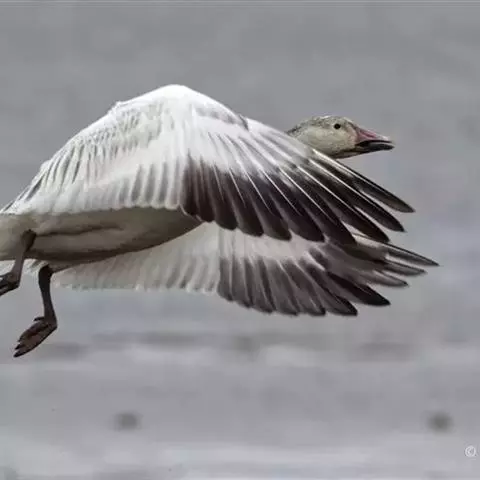 雪雁是鸭科雁属鸟类,雁属中体形大,个体重的鸟类。羽毛洁白,翼角黑色。飞行时双翼拍打用力,振翅频率高。…