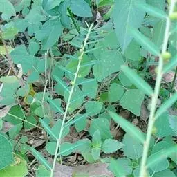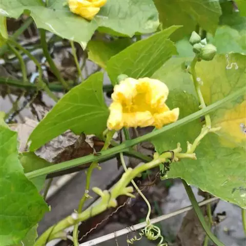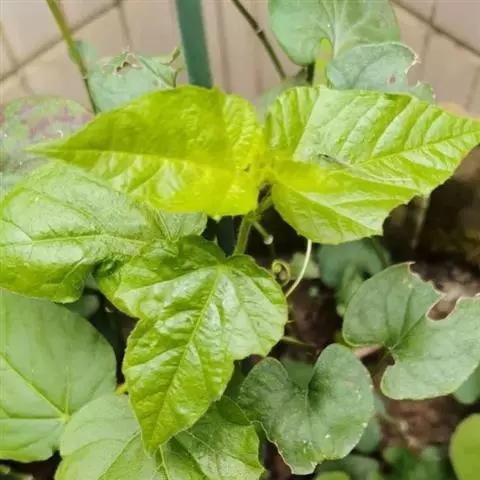 一年生草质藤本,长约3-4米;茎细弱,四棱形,有纵条纹及白色糙伏毛。