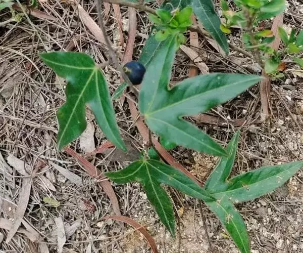 浆果近球形,直径1-1.5厘米,成熟时紫黑色。