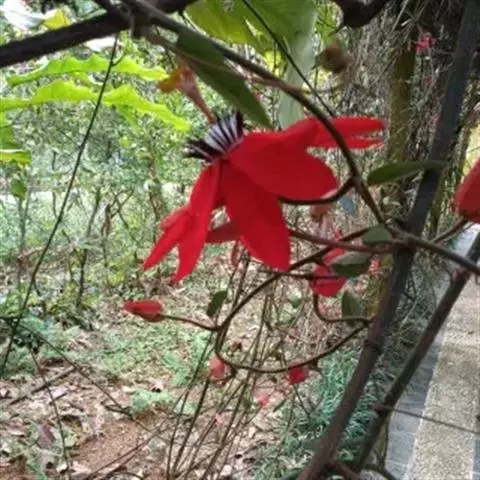 红花西番莲 是西番莲科、西番莲属多年生草质藤本,茎圆形,具卷须,长6-8米。叶互生,长圆形至长卵形,…