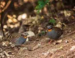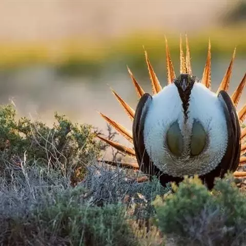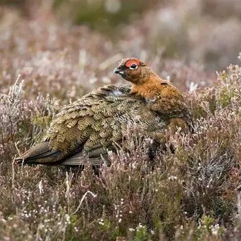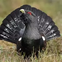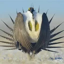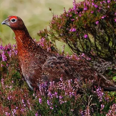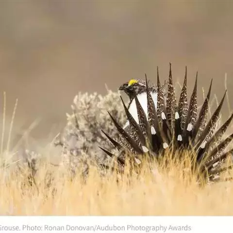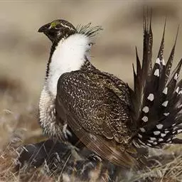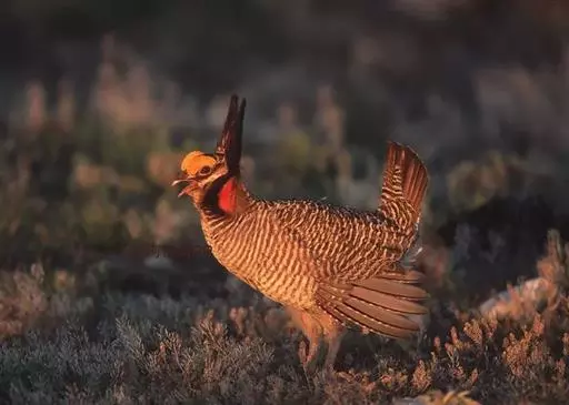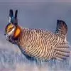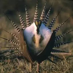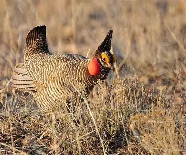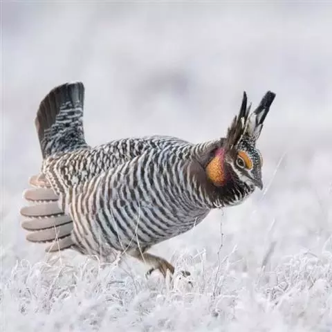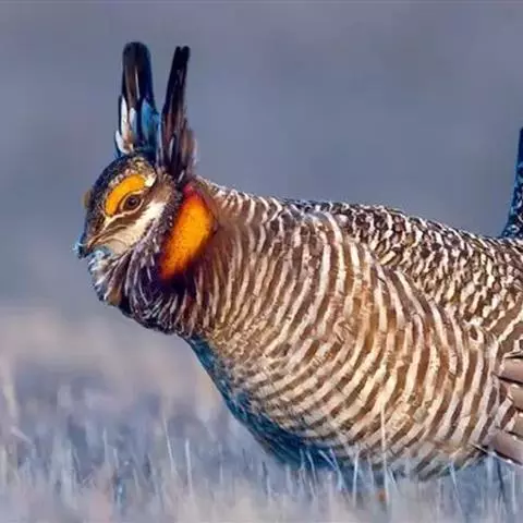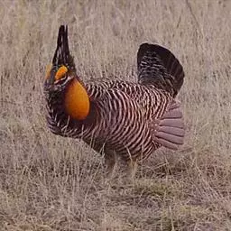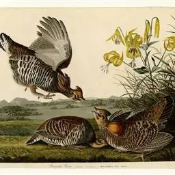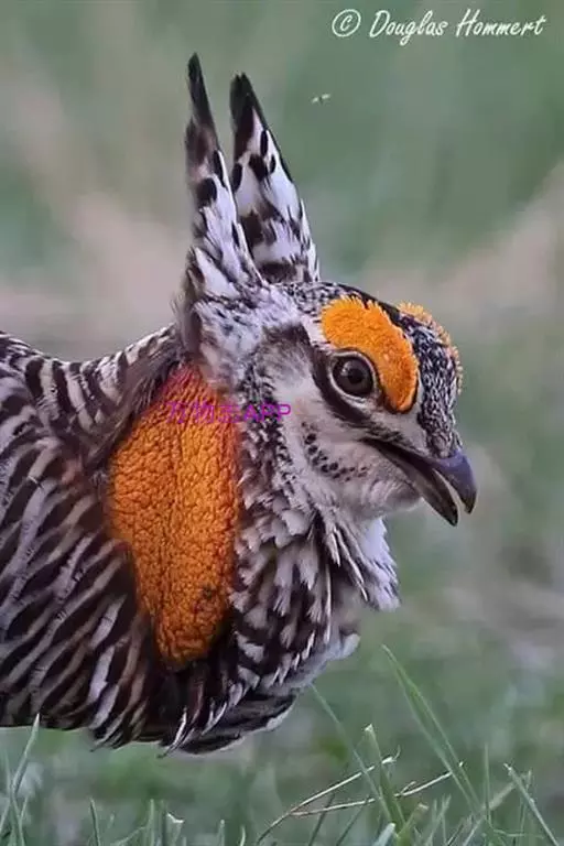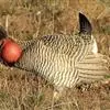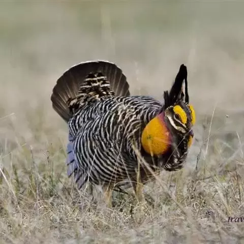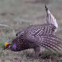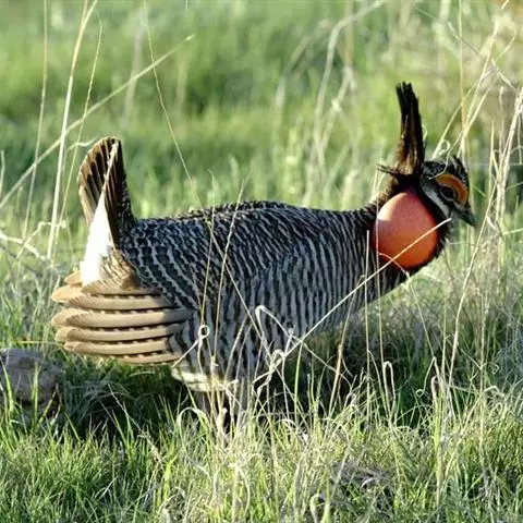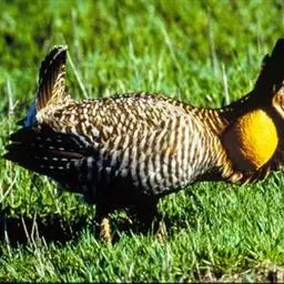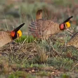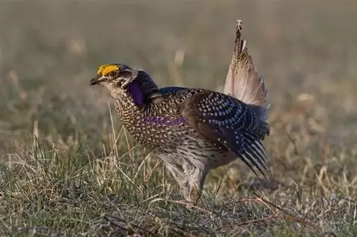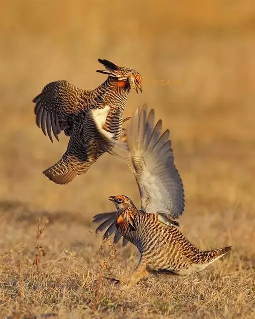 草原松鸡(学名:Tympanuchus cupido):体长43-47厘米,翼展69厘米,体重900-1100克。雄鸟头顶耸立的针状羽毛形成的两个尖顶羽冠。颈部和眼睛上方有黄橙色的膨胀的大气囊。雌鸟的上体是锈褐色,夹杂着黑色及皮黄色的的横斑,下体较淡。在交配季节,雄鸟会发出一个800米远都能听到的鸣叫声,胸部的气囊也会放大。虹膜褐色,嘴角黄色或白色,跗蹠被羽到趾。