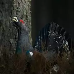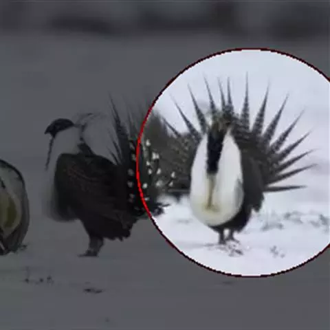 在繁殖季节会举行多姿多采、美仑美奂的炫耀表演。炫耀表演往往在“比舞场”或“竞技场”上进行,由许多只雄鸟一起参加,称为“比舞”表演。各种炫耀方式中,它们先上下扇动有尖头的尾巴,再鼓起胸前两块黄色气囊,把头后昂在颈向前振起双翼羽中,形成一种奇形怪状的姿态。雄松鸡配合着自己羽毛摩擦发出的声响,还有从黄气囊吹出来的布布音调,对着雌松鸡翩翩起舞。