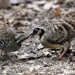 一般在清晨和下午活动,食物包括玉米、大豆和米罗等农作物,也吃嫩叶、种子和昆虫。雏鸟在出生的头几个星期主要以昆虫为食。