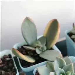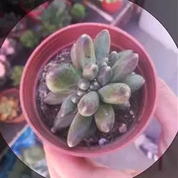 蓝黛莲是一种景天科厚叶草属植物。叶片呈略扁的圆柱形,排列成莲座状;颜色为灰绿色,…