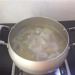 3. 汤锅置火上,倒入高汤750克烧开;