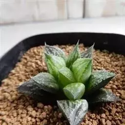 京之华锦(学名:Haworthia cymbiformis f. variegata)是独尾草科(也称阿福花科、日光兰科)瓦苇属的一种植物。也叫凝脂菊,为京之华的斑锦变异品种,植株群生,扁棒状三角形肉质叶排成莲座状,叶表平展,背部隆起,全叶有黄色或白色纵向缟纹,少数叶整片都呈黄色或白色。株型小巧,适合点缀阳光充足的阳台、窗台等处。