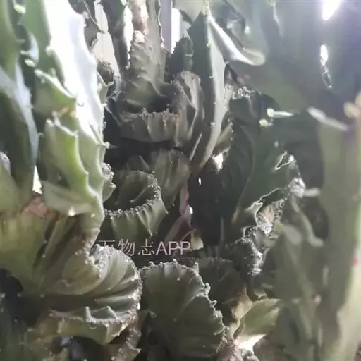 具棱的肉质茎变态成鸡冠状或扁平扇形,其他同霸王鞭。全株含有白色剧毒乳汁,误食可造成严重中毒;溅入眼中可致失明。