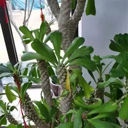 虎刺梅:别称铁海棠,是蔓生灌木植物。茎多分枝,长60-100厘米,直径5-10毫米,具纵棱,密生硬…