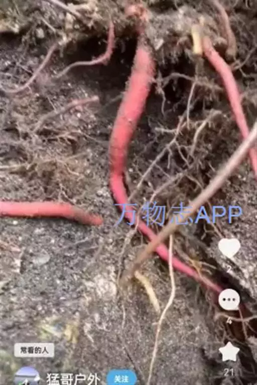2、栽培品较粗壮,直径0.5~1.5cm。表面红棕色,具纵皱纹,外皮紧贴不易剥落。质坚实,断面较平整,略呈角质样。