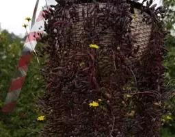 头状花序10-20个,在茎顶密集成球形的总花序,无小花梗或有短小花梗。总苞半球形,直径1厘米;总苞片3-4层,边缘或全部紫褐色,先端急尖,外层被稀疏的长柔毛,外层长圆形,长1.1厘米,宽5毫米,中层及内层披针形,长1.5-1.8厘米,宽2毫米。小花紫色,长1.6厘米,管部长7毫米,檐部长9毫米。