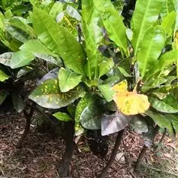变叶木 Rumph. ex A. Juss.)是大戟科灌木或小乔木,高可达2米。枝条无毛。叶薄革质,…