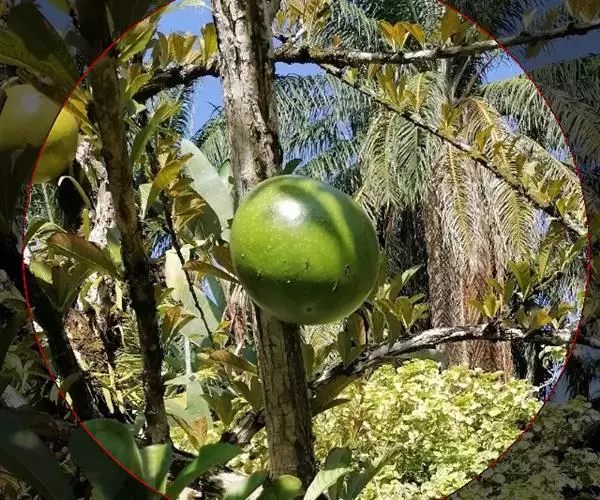它的名字似乎带着浓烈的火药味,其实炮弹果是著名的热带观果植物,这种奇异的果实生长速度很快,小小的幼果不出几天直径就能达20多厘米。观果期长,果实外观青绿光亮,又像西瓜,又像葫芦,让人误以为是一种美味的热带水果,其实它只是好看而不能食用的,果肉粘稠状,有异味,口感不良。