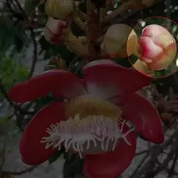 2010-12中国科学院华南植物园热带雨林温室内,有一棵树挂满了果实,又圆又大的,炮弹“从天而降”之势,引来众多游客驻足观赏。因其形状果实酷似原始的炮弹,被形象地称之为炮弹果。