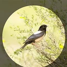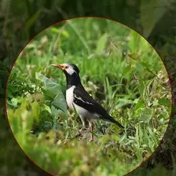 斑椋鸟:是中等体型的黑白色椋鸟,体长24厘米。头顶、头侧、翼斑、腰及腹部白色,喉、胸及上体余部黑色,…