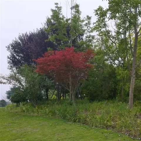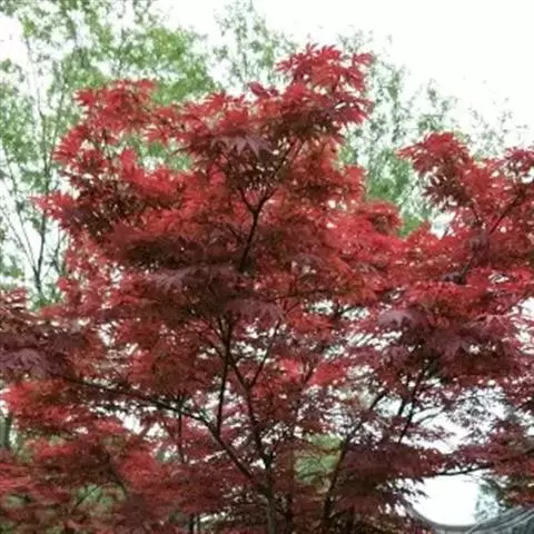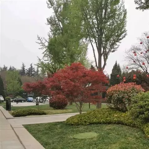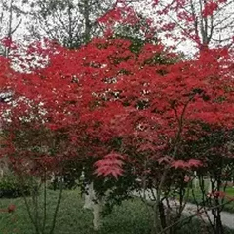 红枫,园艺种,槭树科槭属落叶小乔木,高5~8 m;树冠伞形,枝条开张,细弱。单叶对生,近圆形,薄纸质,…