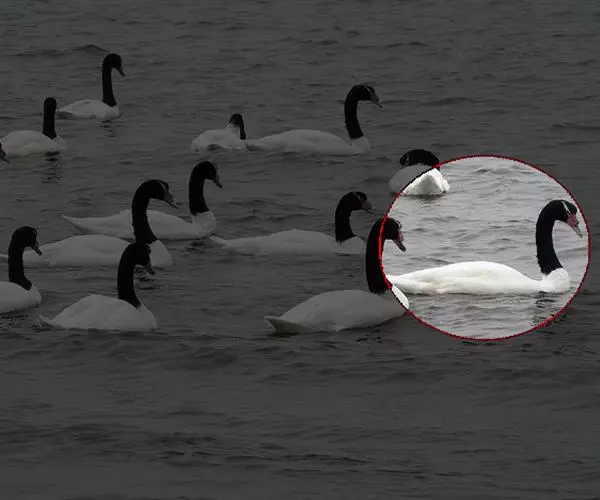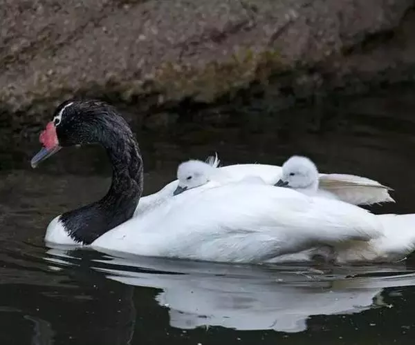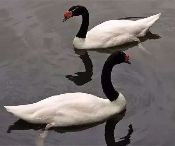 是天鹅家族五大成员之一,它不像大天鹅和小天鹅因周身雪白而显得神圣纯洁,也不及黑天鹅因身材好而感觉神秘优雅。除了长在颈部的羽毛黑而发亮外其余羽毛均为白色,这使得它们没有了其他天鹅那样的圣洁和神秘,却多了一种亲切和自然。