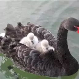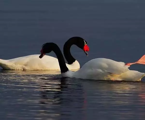黑颈天鹅是世界上感情最专一的动物之一,严格实行一夫一妻制,很多天鹅宁可孤独终老也不随便找个配偶了事,一旦结成连理夫妻非常恩爱,出双入对,相伴一生,他们一起觅食、休息、戏水,甚至在迁徙的途中,也前后照应从不分离;如果一只不幸死去,另一只会终日抑郁哀鸣,宁可孤单寂寞也不再另觅伴侣。黑颈天鹅非常顾家,双方共同抚养后代,所有禽类都是带自己的孩子跟在身旁游水,而只有黑颈天鹅是把宝宝驮在背上的,对小天鹅们疼爱有加。