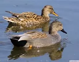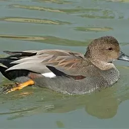 赤膀鸭,是雁形目鸭科鸭属中型游禽。雄鸟嘴黑色,脚橙黄色。头侧及头上部浅白色,满杂以褐色斑点,…
