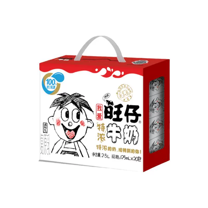旺仔牛奶礼袋轻量装,是赠送亲朋好友的理想选择。更易于家庭整箱消费,是合家共享之佳品。旺仔系列牛奶口感纯正,富含人体每日必须的多种氨基酸、钙、脂肪、维生素等营养成份。迷你瘦身型更受低年龄层次儿童喜爱。