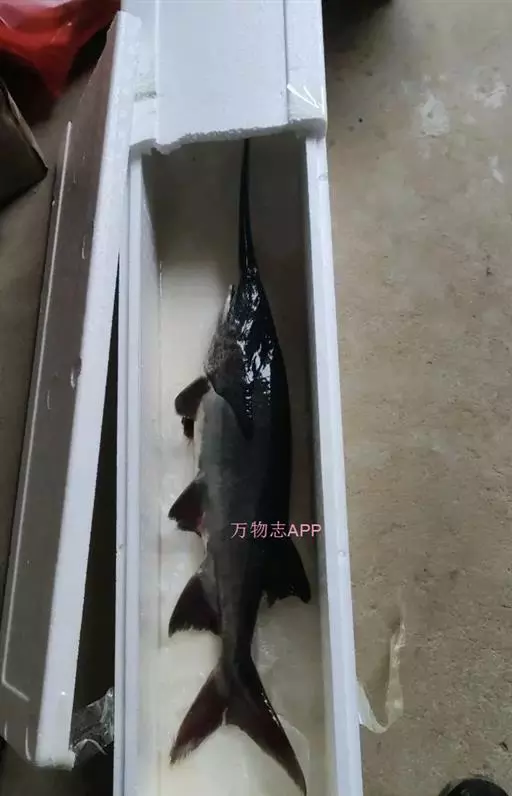 鸭嘴鱼学名:美国匙吻鲟(又名鸭嘴鲟),英文名:Polyodonspathala,匙吻鲟,学名“美国匙吻鲟”原产美国密西西比河流域,是一种大型淡水经济鱼类,属鲟形目匙吻白鲟科。是从3亿年之前(即恐龙时期)就在地球上生活,并存留下来的一种珍稀鲟鱼类,是世界上匙吻鲟科中仅有的两个品种之一。它与中华鲟以及长江水域中的白鲟同属鲟形目白鲟科。