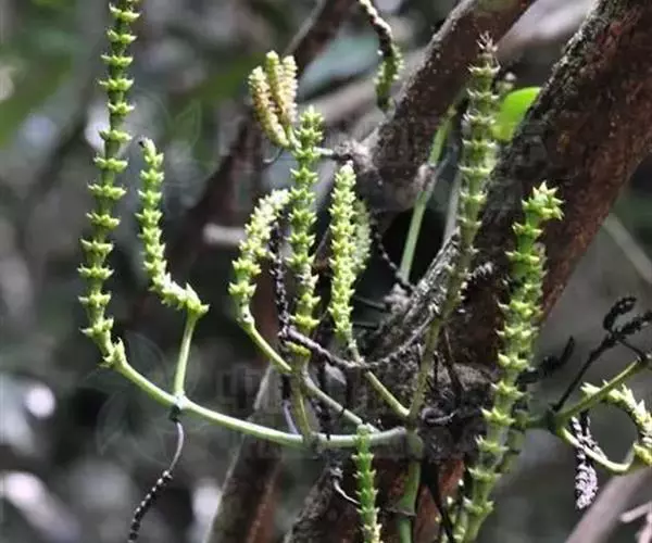罗浮买麻藤,藤本,茎枝圆形,皮紫棕色,皮孔浅不显著。产于广东。