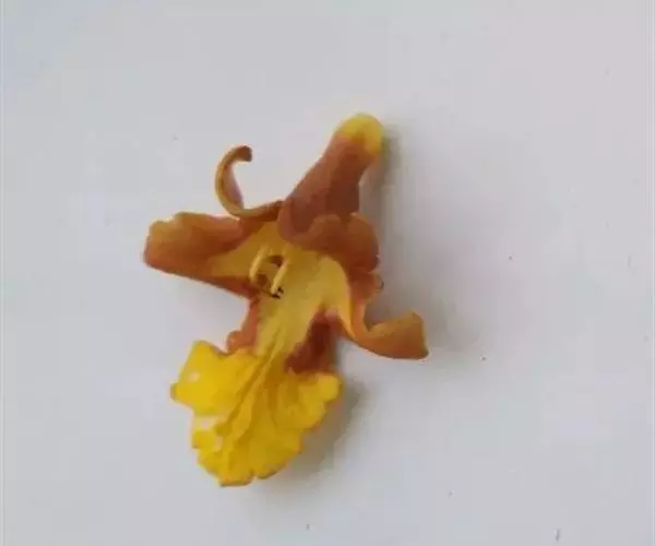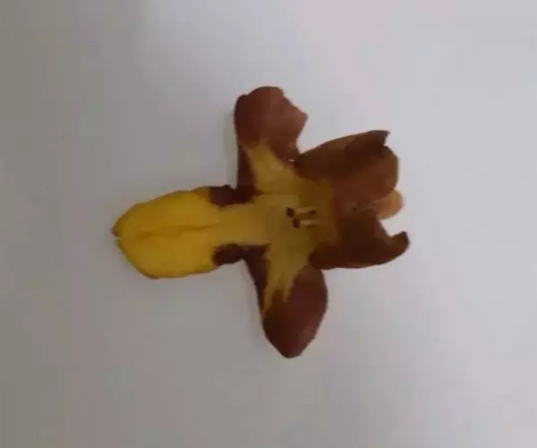 云南石梓 落叶乔木,高达15米,胸径30-50厘米,树干直;树皮灰棕色,呈不规则块状脱落;幼枝、叶柄、叶背及花序均密被黄褐色绒毛;幼枝方形略扁,有棱,老后渐圆,具皮孔,叶痕明显突起。叶片厚纸质,广卵形,长8-19厘米,宽4.5-15厘米,顶端渐尖,基部浅心形至阔楔形,近基部有2至数个黑色盘状腺点,基生脉三出,侧脉3-5对,第3回侧脉近平行,在背面显著隆起;叶柄圆柱形,长3.5-10厘米,有纵沟。聚伞花序组成顶生的圆锥花序,总花梗长15-30厘米;花萼钟状,长约3-5毫米,外面有黑色盘状腺点,顶端有5个三角形小齿;花冠长3-4厘米,黄色,外面密被黄褐色绒毛,内面无毛,两面均疏生腺点,二唇形,上唇全缘或2浅裂,下唇3裂,中裂片长而大,裂片顶端钝圆;雄蕊4,二强,长雄蕊及花柱略伸出花冠喉部;子房无毛,具腺点;花柱疏生腺点,柱头不等长2裂。核果椭圆形或倒卵状椭圆形,长1.5-2厘米,成熟时黄色,干后黑色,常仅有1颗种子。花期4-5月,果期5-7月。