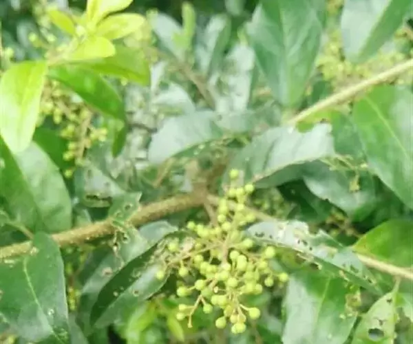 花:圆锥花序顶生或腋生,塔形,长4-11厘米,宽3-8厘米;花序轴被较密淡黄色短柔毛或柔毛以至近无毛;花梗长1-3毫米,被短柔毛或无毛;花萼无毛,长1-1.5毫米,先端呈截形或呈浅波状齿;花冠长3.5-5.5毫米,花冠管长1.5-2.5毫米,裂片长圆状椭圆形或卵状椭圆形,长2-4毫米;花丝与裂片近等长或长于裂片,花药长圆形,长约1毫米。