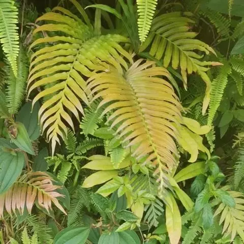 苏铁蕨是乌毛蕨科苏铁蕨属植物。根状茎粗壮,木质,直立圆柱状,直径达15厘米或更粗,…