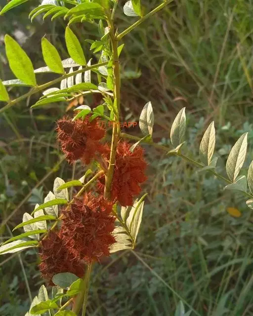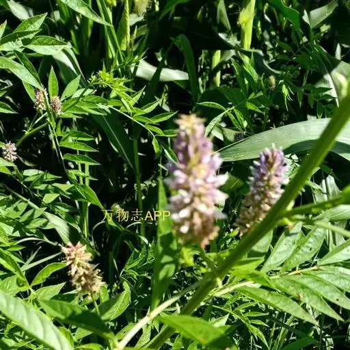 直立属,叶互生,奇数现状复叶,小叶7~17枚,椭圆形卵状,总状花序腋生,淡紫红色,蝶形花。长圆形夹果,有时呈镰刀状或环状弯曲,密被棕色刺毛状腺毛。扁圆形种子。