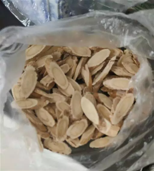 野生灰皮甘草切片 (1)本品横切面:木栓层为数列棕色细胞。皮层较窄。韧皮部射线宽广,多弯曲,常现裂隙;纤维多成束,非木化或微木化,周围薄壁细胞常含草酸钙方晶;筛管群常因压缩而变形。束内形成层明显。木质部射线宽3~5列细胞;导管较多,直径约至160微米;木纤维成束,周围薄壁细胞亦含草酸钙方晶。根中心无髓;根茎中心有髓。粉末淡棕黄色。纤维成束,直径8~14微米,壁厚,微木化,周围薄壁细胞含草酸钙方晶,形成晶纤维。草酸钙方晶多见。具缘纹孔导管较大,稀有网纹导管。木栓细胞红棕色,多角形,微木化。