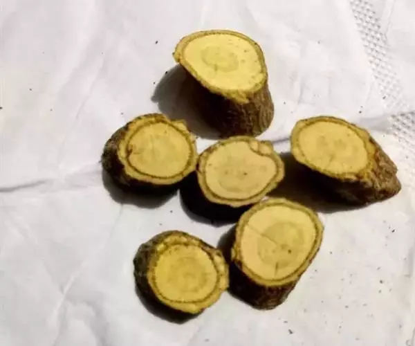 2、品种选用及种子处理:良种是夺取甘草高产的内在因素。在我县一般选用乌拉尔甘草和胀果甘草为当家品种。采用种子做播种材料者,播前种子用电动碾米机进行碾磨,或将种子称重置于陶瓷罐内,按1千克种子加80%的浓硫酸30毫升进行拌种,用光滑木棒反复搅拌,在20℃温度下经过7小时的闷种,然后用清水多次冲洗后晾干备用,发芽率可达90%以上。