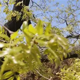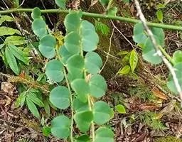 叶长5-20厘米,托叶三角状披针形,长约5毫米,宽约2毫米,两面密被白色短柔毛;叶柄密被褐色腺点和短柔毛;小叶5-17枚,卵形、长卵形或近圆形,长1.5-5厘米,宽0.8-3厘米,上面暗绿色,下面绿色,两面均密被黄褐色腺点及短柔毛,顶端钝,具短 尖,基部圆,边缘全缘或微呈波状,多少反卷。