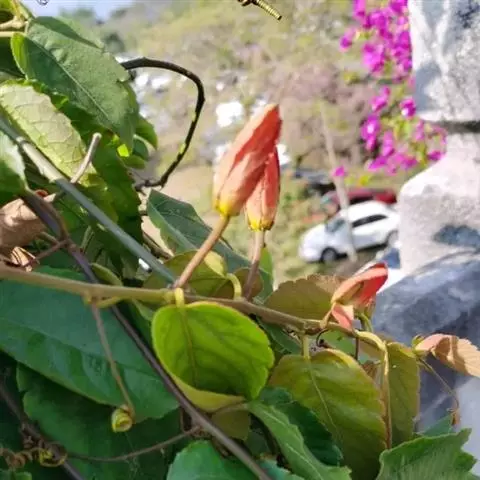 西番莲西番莲科西番莲属多年生常绿攀缘木质藤本植物。茎是圆柱形且有棱角,没有毛;叶子像纸一样薄,…