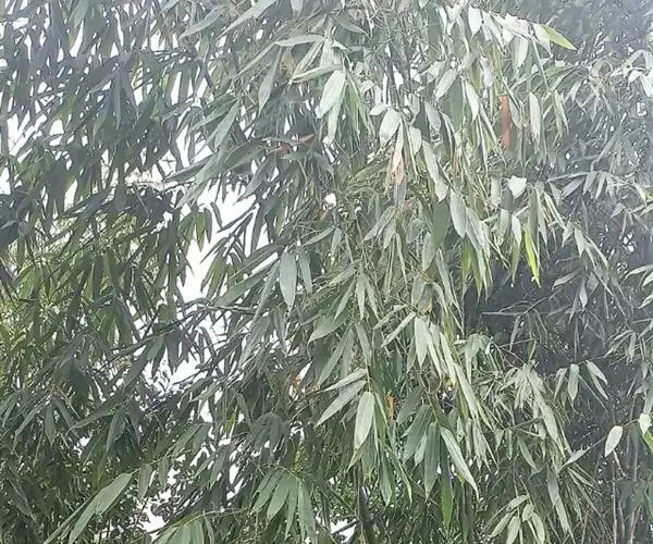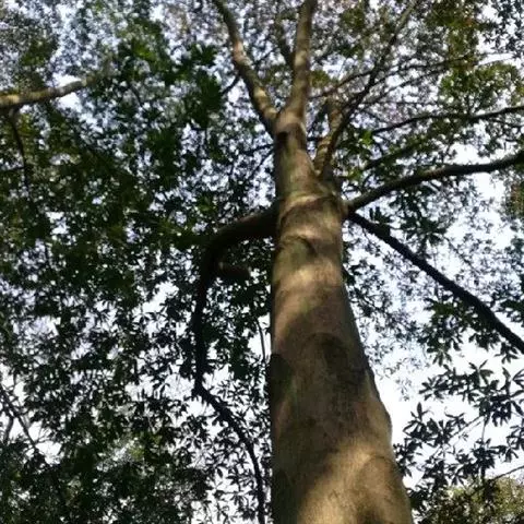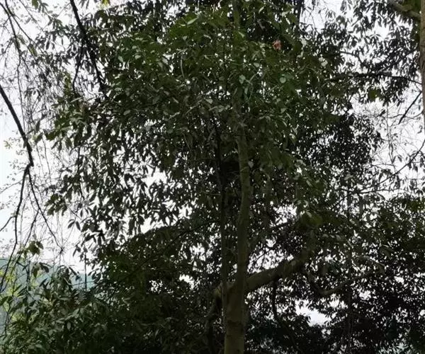 密荫大乔木,高20米;树皮宿存,深褐色,厚2厘米,稍软松,有不规则斜裂沟;嫩枝有棱。幼态叶对生,叶片厚革质,卵形,长11厘米,宽达7厘米,有柄;成熟叶卵状披针形,厚革质,不等侧,长8-17厘米,宽3-7厘米,侧脉多而明显,以80度开角缓斜走向边缘,两面均有腺点,边脉离边缘1-1.5毫米;叶柄长1.5-2.5厘米。