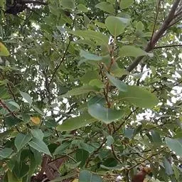 危害症状:病菌主要为害叶片和枝梢。叶片感染初期出现针头状大小的水渍斑,病斑逐渐扩大,组织坏死如被灼伤,边缘有一赤褐色晕圈,后期病斑中部变灰褐色,多数病斑连结造成4叶尖或叶缘枯,病叶卷曲、脆裂脱落。枝条染病,表皮层遍布近圆形或长条形的小点,扩大后若病斑环绕枝干,可造成枝干干枯死亡。在雨后或高湿环境,尤其在靠近地面枝叶的坏死部分,出现密布的白色叉形点状物,即为病菌的分生孢子堆。