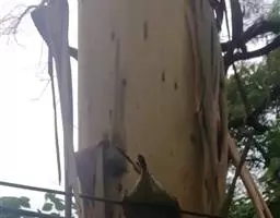 危害症状: 桉树常见的虫害是土栖白蚁,主要是黑翅大白蚁,其次是黄翅大白蚁。其它蚁种虽在林内有发现,但不足以造成危害。 在桉树幼林里,白蚁先是危害根颈部,再逐步从土层转向地表和地上部分,然后沿表土一圈剥食主根、倒根,以及树干基部皮层,使幼树营养不能上下输送而死。严重时,沿树干上下修筑“泥被”,将树干树枝全部包裹起来,使每株幼树的外观如“泥塑”一般,白蚁在“泥被”内将桉树韧皮部剥食一光,使木质部暴露,从而导致林木死亡。